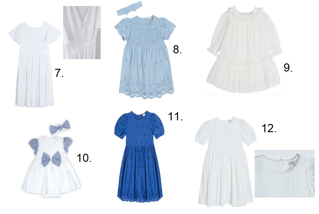 Odpukać moje córki przejęły po mnie jedna cechę, która cenię i u siebie – wchodząc do sklepu od razu wiedzą czy jest okey, czy po prostu nic w nim nie znajdą dla siebie. Wybierają z wieszaka 2 maksymalnie 3 modele letnich sukienek na specjalne okazje i zazwyczaj wszystkie są strzałem w 10! Tym razem na uroczystość wybrały błękit i biel. Nie wtrącałam się zupełnie, bo od razu byłam zaskoczona jak ładnie się na nich prezentują. Powiem więcej – jako subiektywna matka – uważam że lepiej wyglądają na żywych modelach niż na wieszaku!