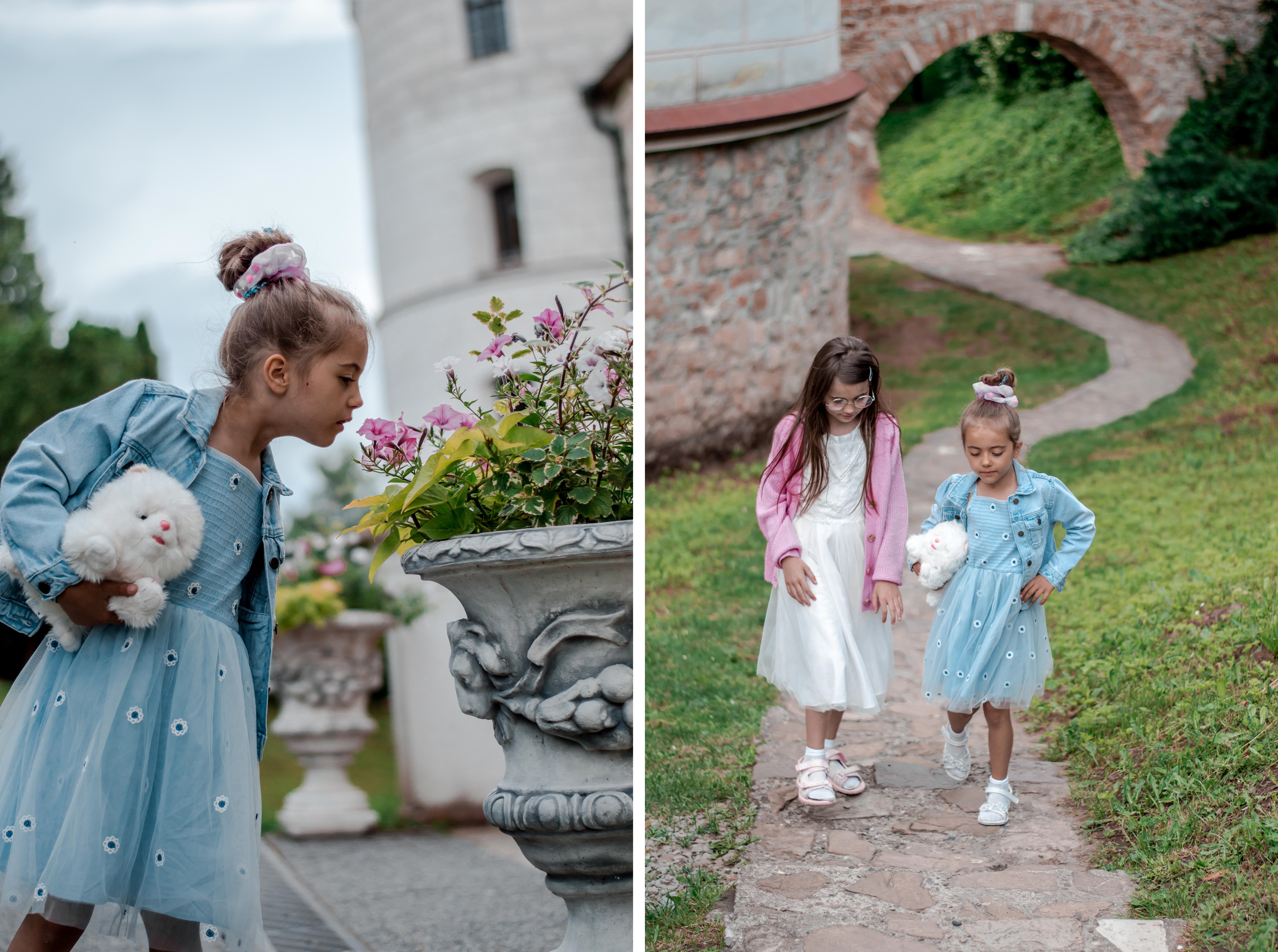 Dlatego oprócz przeglądu 24 propozycji na letnie eleganckie sukienki na wesele i inne specjalne okazje pokażę Wam jak wybrane przez nas sukienki wyglądają na żywo (zerknijcie na model nr 5 z kolażu zdjęć i zdjęcie Oli). Wybrałam się z nimi do zamkowego parku. Biegały, wirowały, karmiły kaczki, nawet zaliczyły 1 kłótnię między sobą, a sukienki w niczym im nie przeszkadzały. Niesamowicie wygodne i myślę, że ponadczasowe.