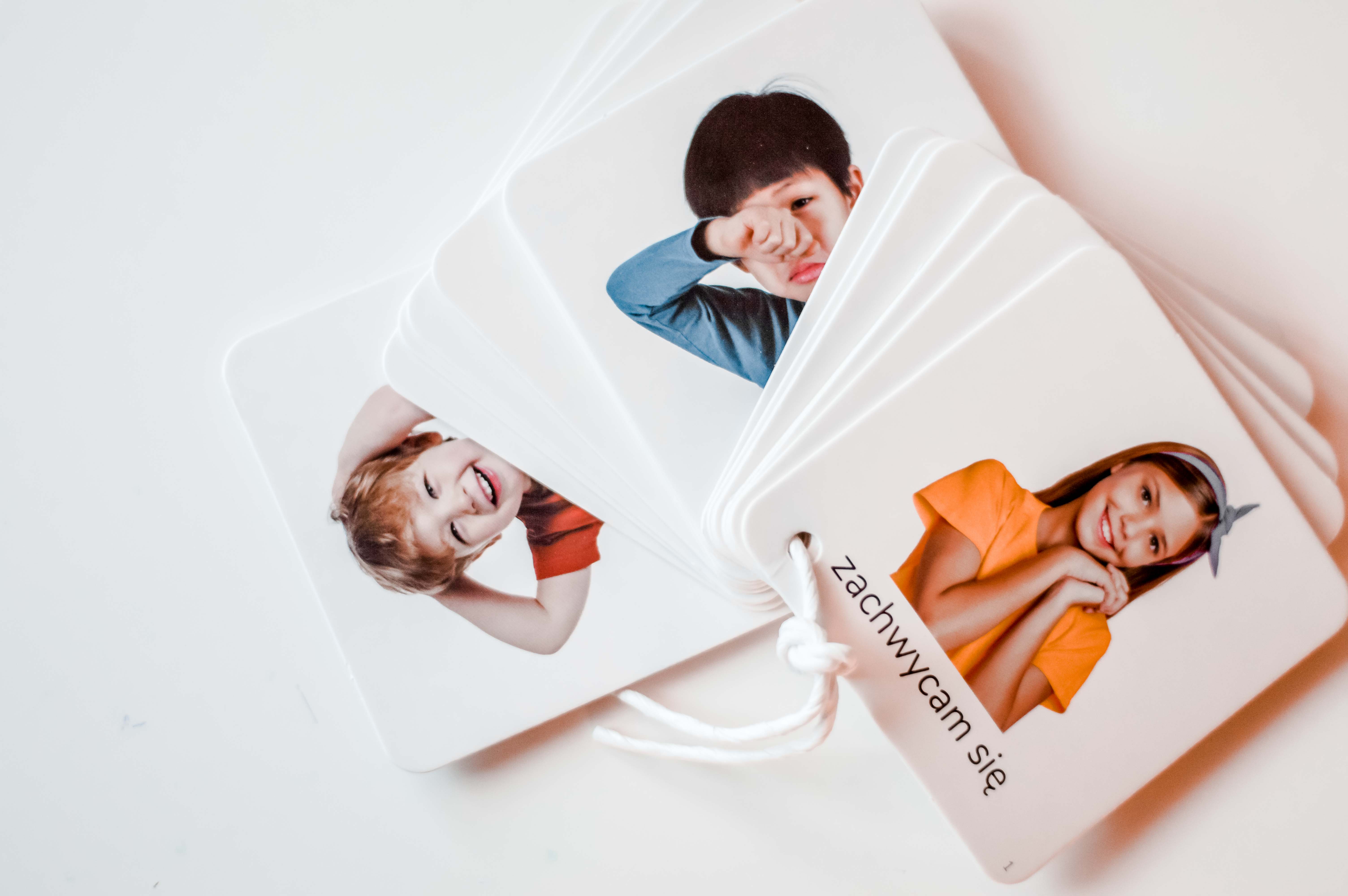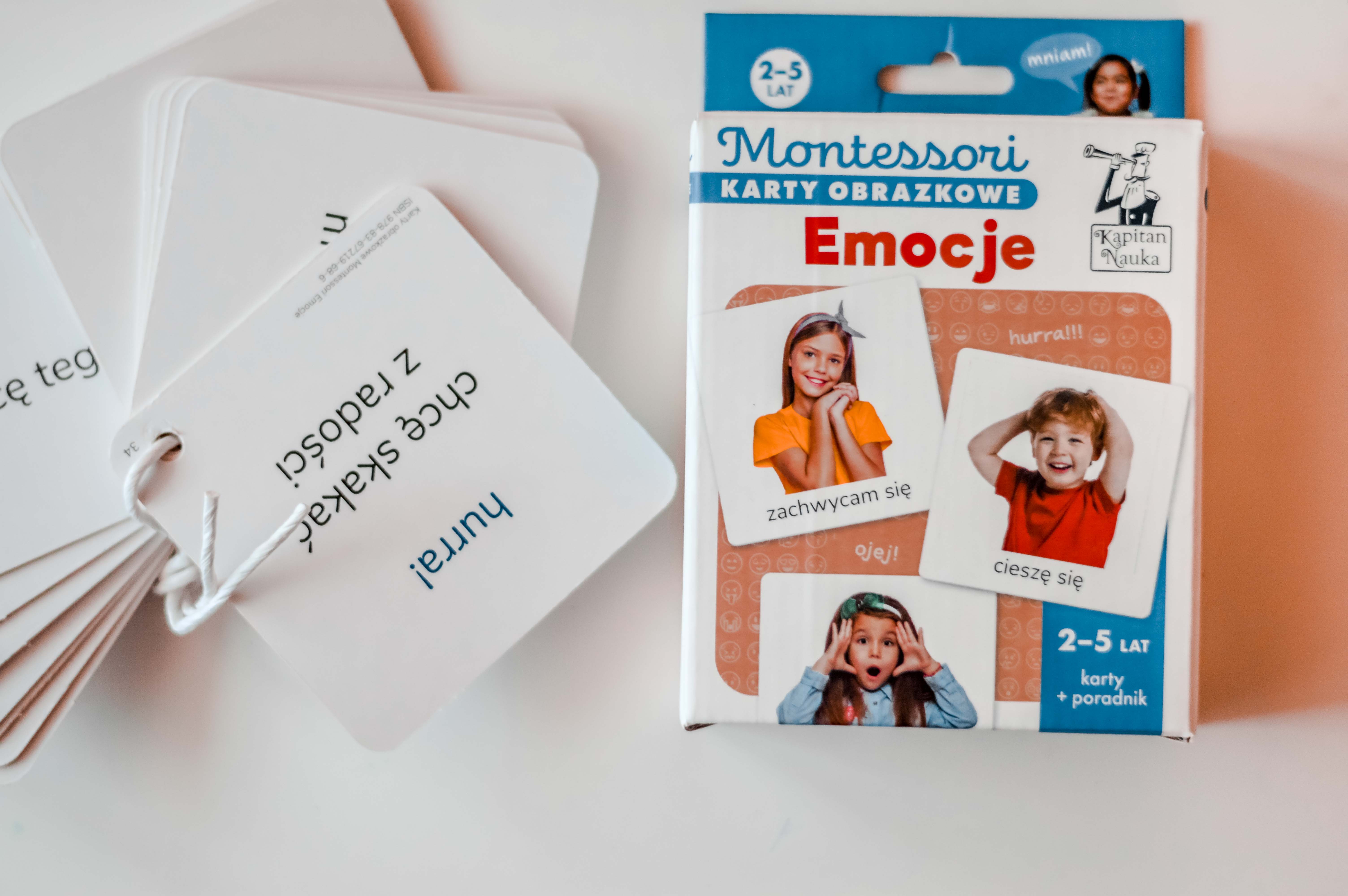 Karty obrazkowe Montessori. Emocje prezentują zdjęcia dzieci wyrażające różne uczucia oraz podpisy, które pomagają wyrazić to, co się czuje w danej sytuacji. To doskonały trening inteligencji emocjonalnej i empatii, a także ćwiczenie koncentracji i spostrzegawczości.