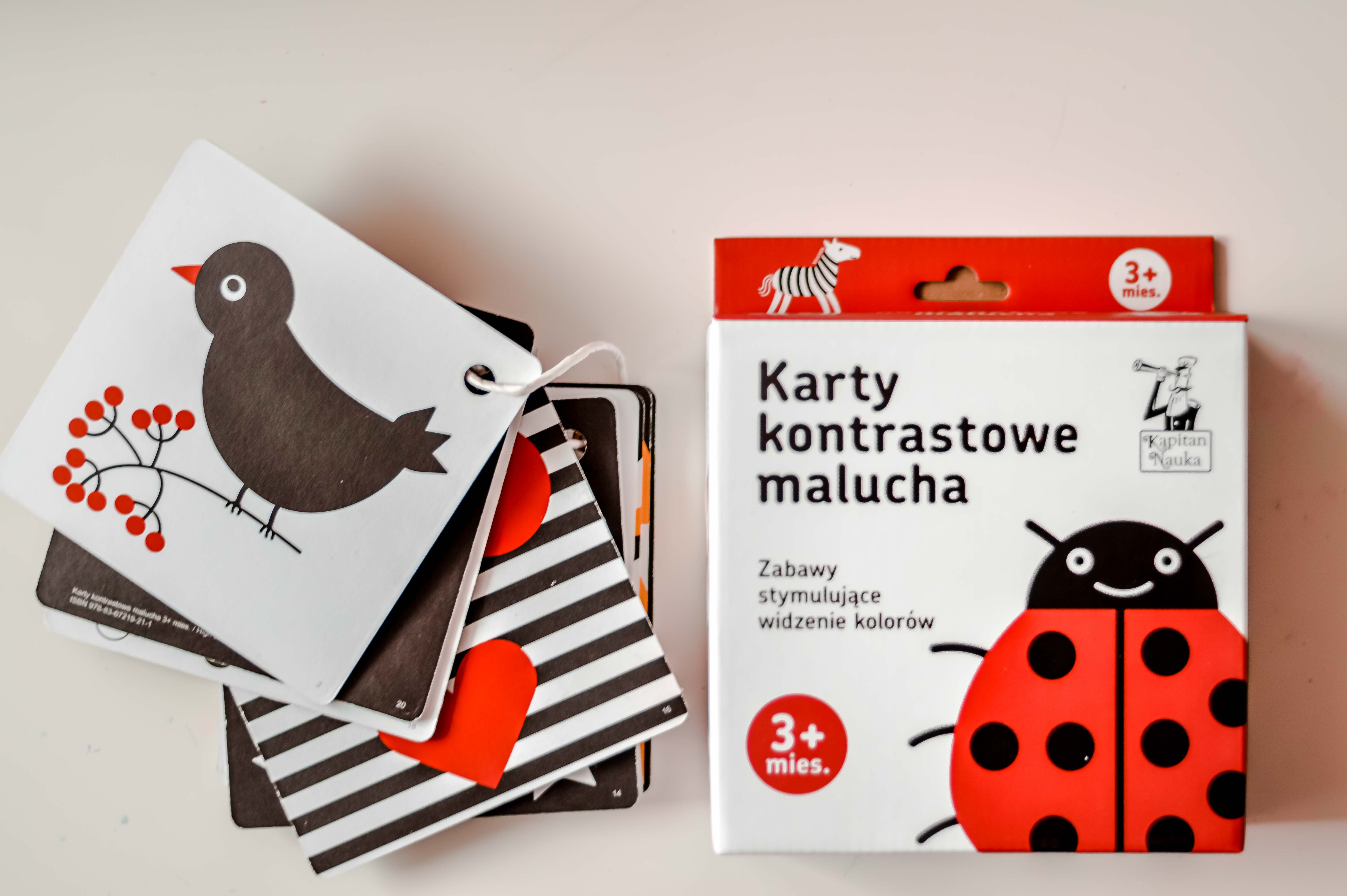 Karty kontrastowe dla niemowlaków od 3. miesiąca życia oferują zabawy stymulujące widzenie oraz rozpoznawanie kolorów i kształtów. W zestawie znajdziemy aż 10 dwustronnych kart oraz świetny poradnik dla rodziców, dzięki któremu dowiadujemy się, jak wspomagać rozwój wzroku dziecka od pierwszych chwil życia, co powinno nas zaniepokoić, a także jak bawić się kartami. Poradnik to przystępnie podana wiedza w pigułce na temat kształtowania umiejętności widzenia, koncentracji i uwagi wzrokowej u niemowlaka.