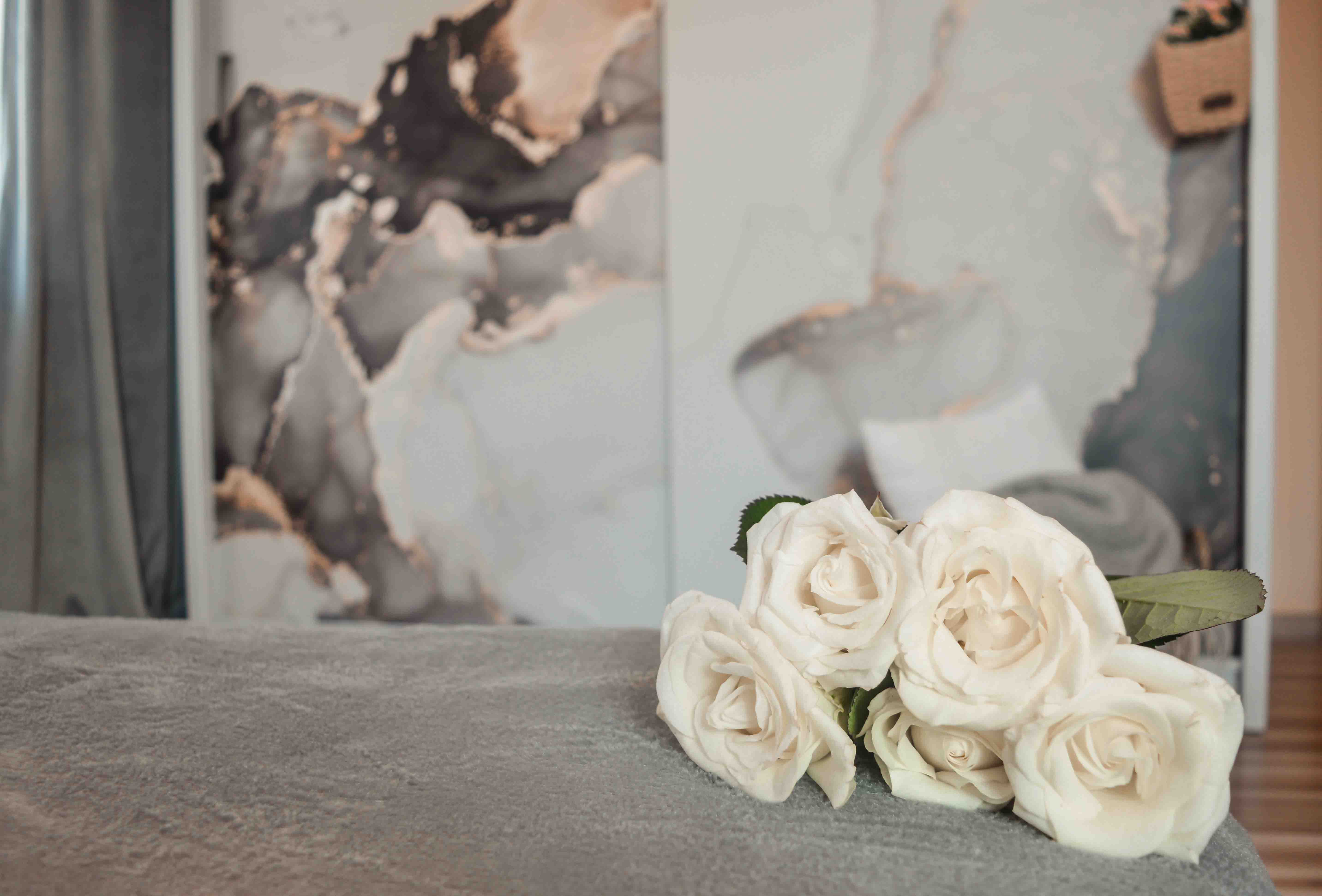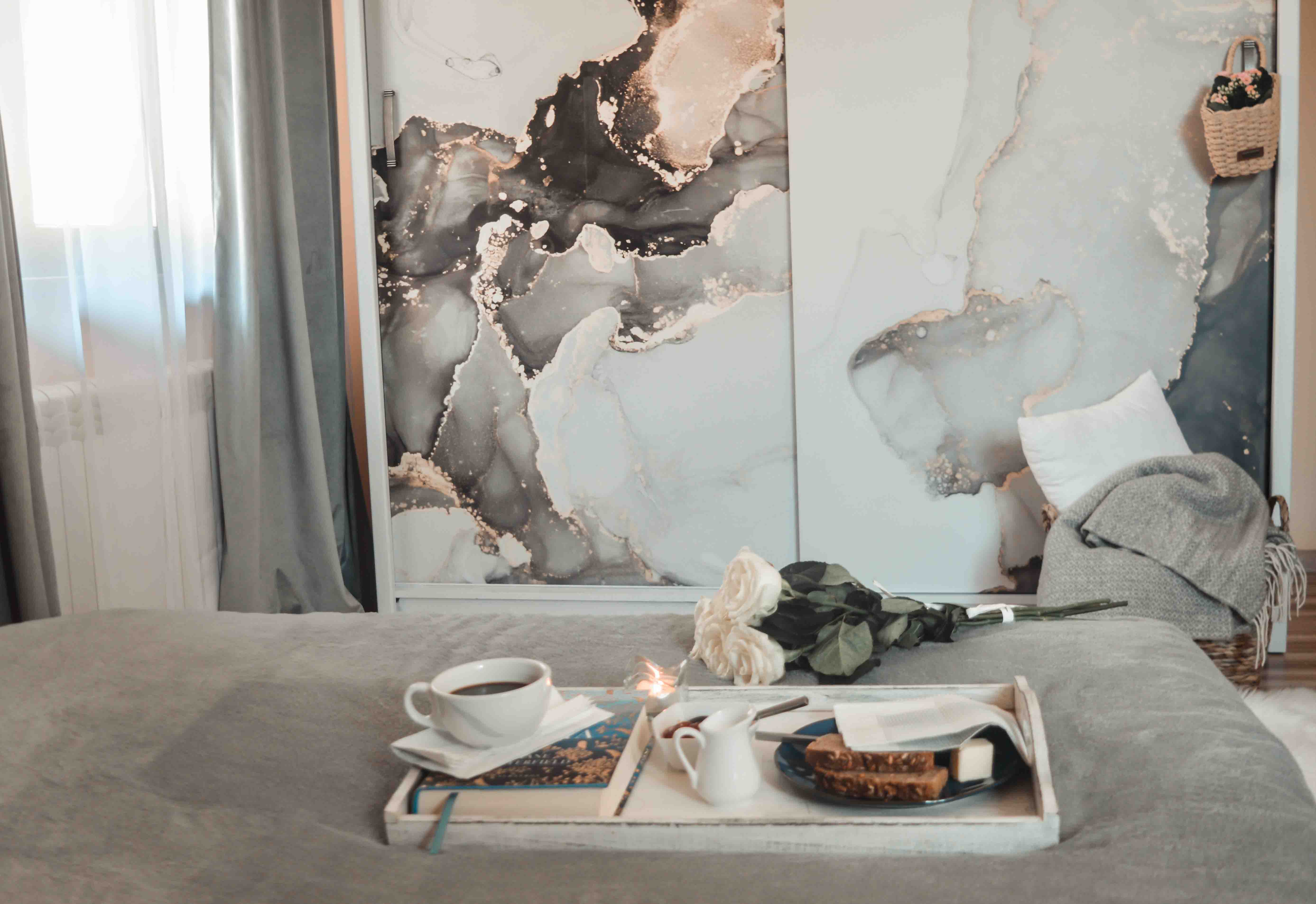 Pomyślałam, że dobrze odnajduję spokój w szarościach, jasnych barwach połączonych ze złotem, srebrem. A przecież urządzam pokój w którym śpię, czytam i chowam się przed dziećmi (które i tak mnie po średnio 10 minutach zawsze odnajdą). Szafa to dopiero pierwszy krok ku mojej wyśnionej sypialni. Na tle nowych frontów i odświeżonych, właściwie całkiem zmienionych boków – świetnie będą komponowały się miękkie pledy, poduchy oraz kwiaty, których jestem wielką fanką.