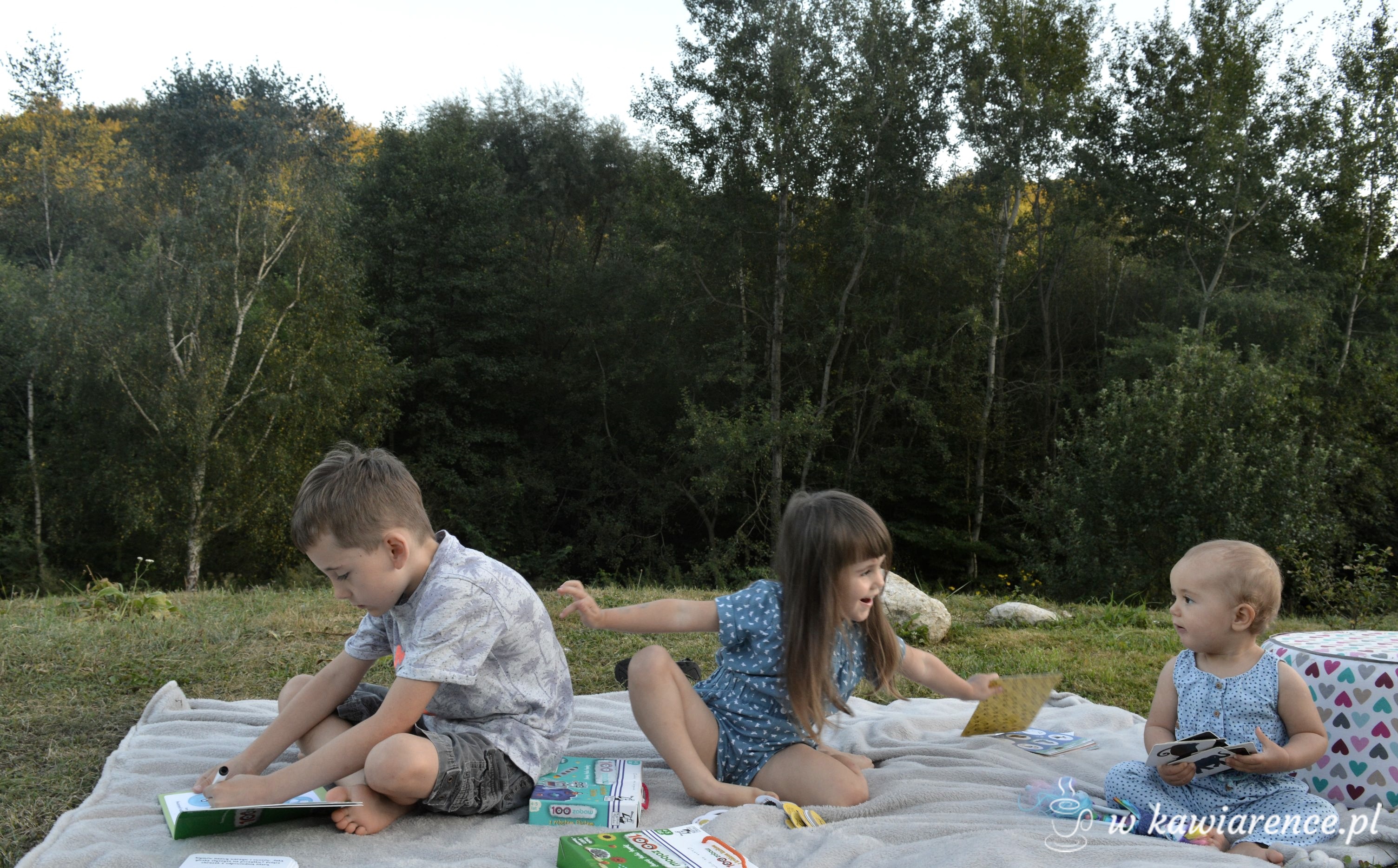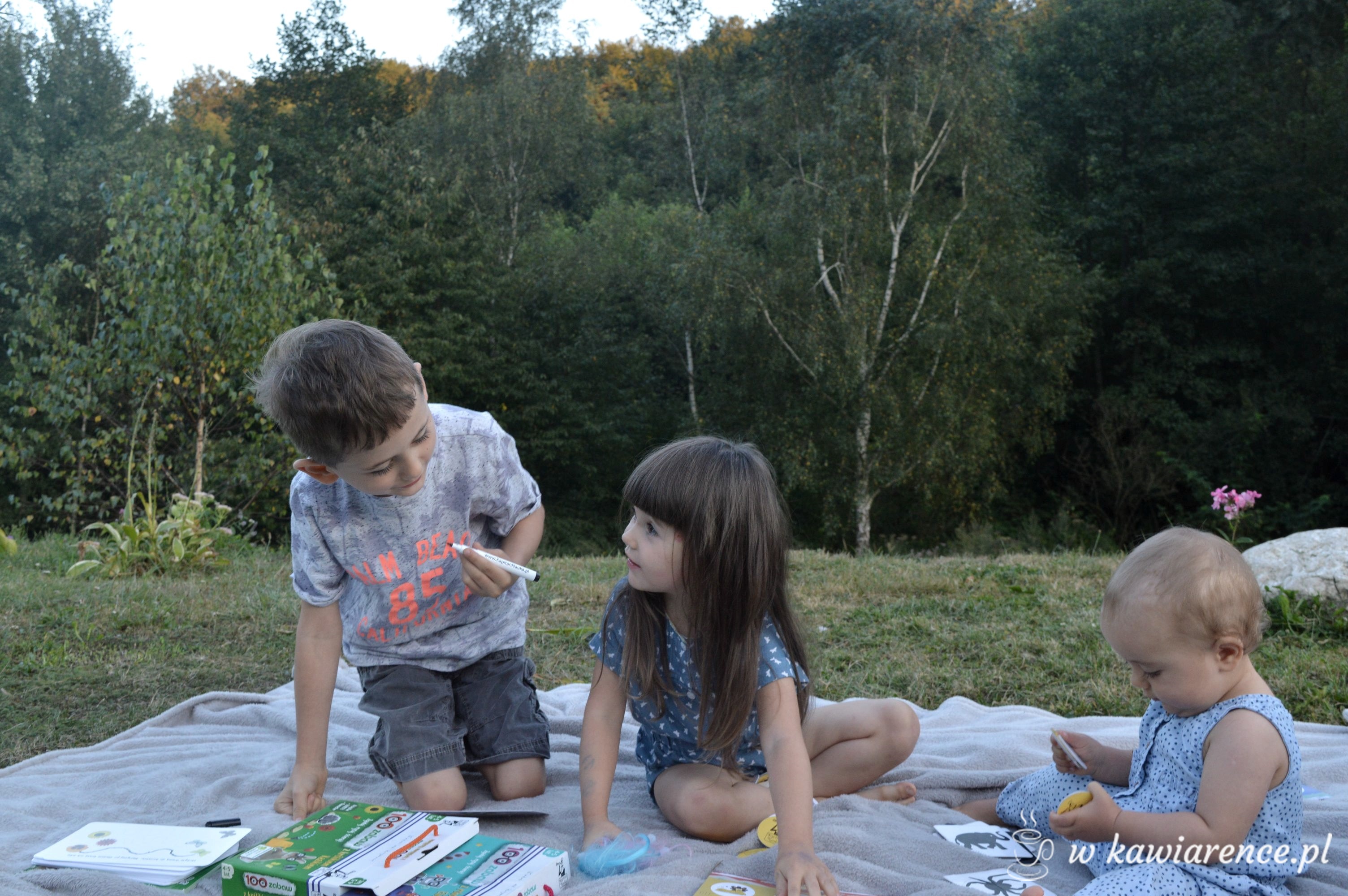 szukam przeróżnych zajęć dla starszej mojej dwójki. Trampolina, domek ze zjeżdżalnią, basen w okresie letnim, dużo klocków / u nas szał na lego duplo u całej trójki /, plastelina, piasek kinetyczny, bajki, kredki, malowanki, przebieranki w moje ubrania, trochę tableta i trochę bajek w tv, w momencie kiedy muszę mieć nieco ciszy w domu, podczas drzemki w ciągu dnia Olusi.