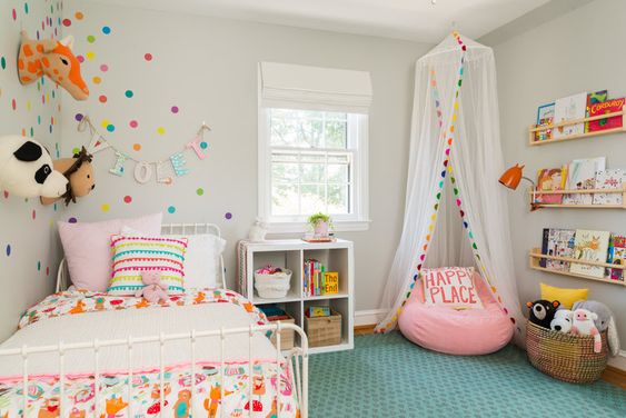 Kolorowe pokoje dla dziewczynek – te w odcieniach różu, tęczowe lub białe z tysiącem dziewczęcych bibelotów. Każda dziewczynka to mała kobietka z własnymi upodobaniami. Niektóre dzieci lubią otaczać się książkami, inne zwierzątkami, a jeszcze inne lalkami. Nagromadzenie zabawek i różnych różności w jednym pomieszczeniu często budzi konsternację. Bo gdzież to wszystko poupychać?