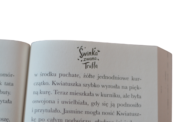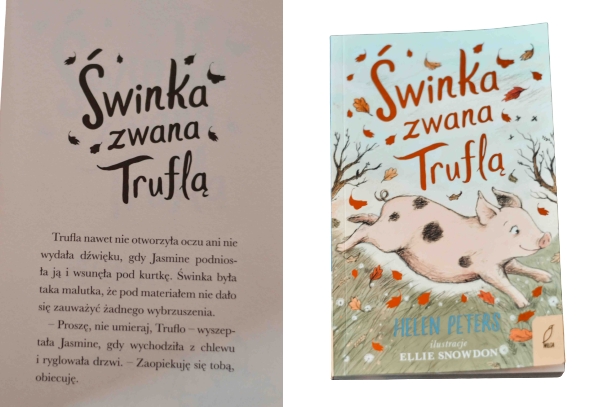 Jasmine Green mieszkająca na Dębowej Farmie pewnego dnia odwiedza Pana Cartera i.. wykrada małe, smutne prosiątko. Obawia się, że bez jej pomocy zwierzątko umrze. W tajemnicy przemyca zwierzątko na farmę rodziców. Od tej pory zwierzątko staje się niezwykłe i otrzymuje od dziewczynki imię Trufla. Czy uda jej się na stałe zamieszkać z Jasmine? Tego dowiecie się z książki pt. śwnka zwana Truflą. Jedno Wam tylko zdradzę. Trufla jest wielka bohaterką i jednocześnie pierwszym zwierzątko, które uratowała dziewczynka.