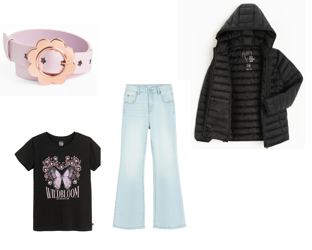 Obserwuję modę dziecięco-młodzieżową i myślę, że poniższe stylizacje są dokłądnie w punkt. Wszystko to, co najbardziej lubią dziewczynki w wieku od 7 do 14 lat czyi w wieku szkoły podstawowej. Sety ubrań są zapisane według wieku – od najmłodszych do najstarszych estetek.
